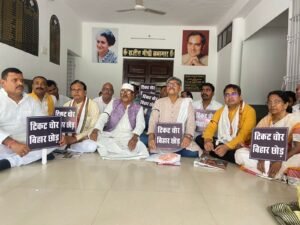 बिहार कांग्रेस के टिकट बिक्री और प्रभारी के खिलाफ कांग्रेसियों ने सदाकत आश्रम में दिया धरना, किया विरोध प्रदर्शन