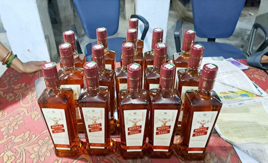 पटना,पालीगंज। स्थानीय बाजार स्थित भगजोगा रोड से एक ही बाइक पर सवार 3 युवकों को पालीगंज पुलिस ने शक के आधार पर सोमवार की शाम गिरफ्तार कर लिया। जानकारी के अनुसार, सोमवार की देर शाम पालीगंज पुलिस की टीम SI योगेंद्र सिंह के नेतृत्व में गश्त पर निकली थी। उसी दौरान योगेंद्र सिंह की नजर भगजोगा रोड में एक बाइक पर सवार थैला लिए 3 युवकों पर पड़ी। जिसे देख उन्होंने शक जाहिर करते हुए बाइक को रूकवाया तथा बैग की तलाशी लिया। जिसके दौरान बैग से 750 ML का 16 बोतल अंग्रेजी शराब बरामद हुआ। जिसे देख पुलिस ने तीनों को गिरफ्त में लॉकर थाने लाई। युवकों की पहचान दुल्हिन बाजार थाना क्षेत्र के अछुआ गांव निवासी बिट्टू कुमार, कुंदन कुमार व अंकुश कुमार के रूप में हुआ। वही पूछताछ के दौरान युवकों ने बताया कि वह झारखंड के कोडरमा से शराब लेकर आ रहा था। वही इस सम्बंध में पालीगंज पुलिस ने बताया कि गिरफ्तार युवकों के पास से 12 लीटर अंग्रेजी शराब बरामद हुई है। वही युवकों का एक स्प्लेंडर नामक बाइक भी जप्त किया गया है।