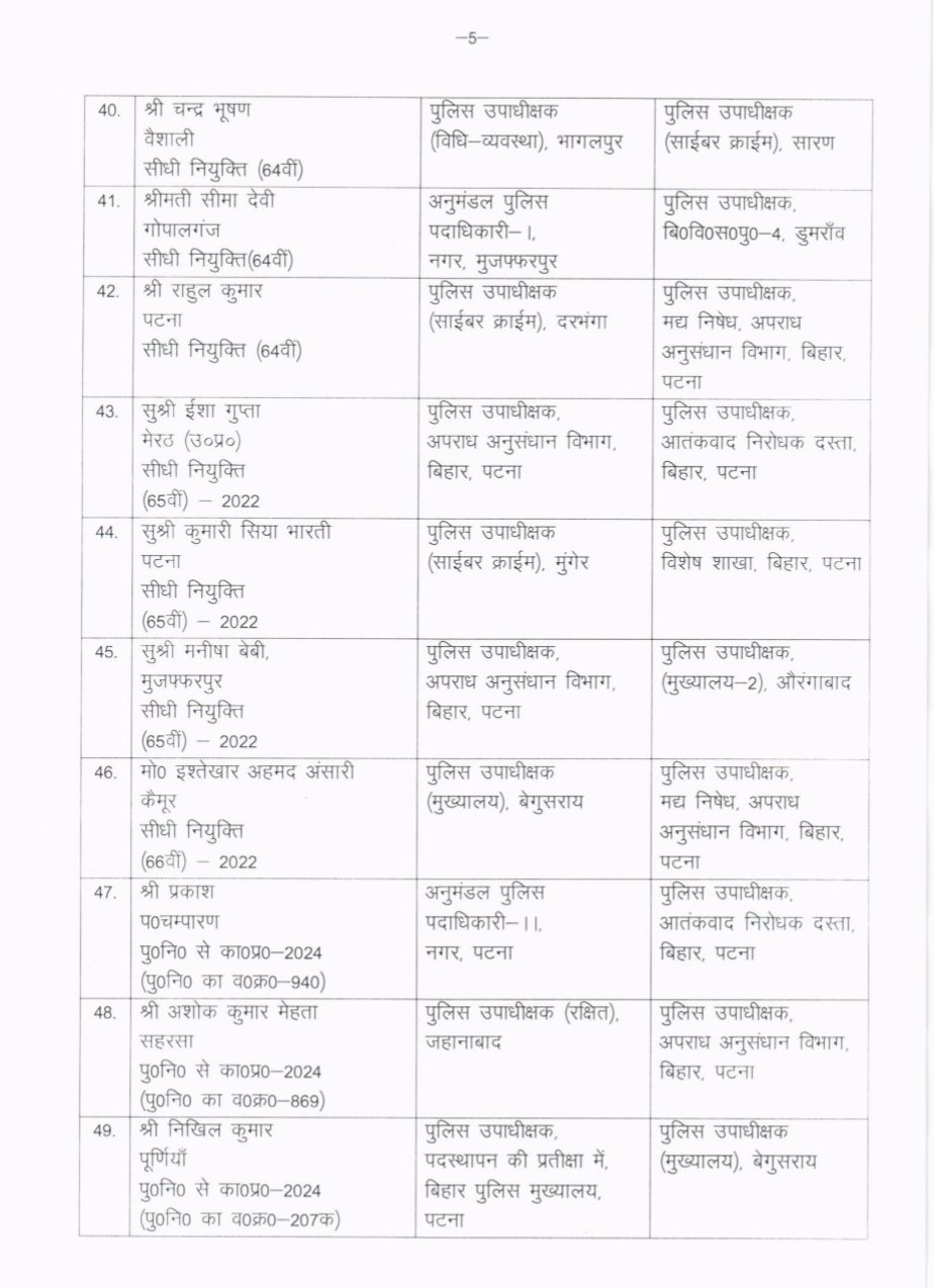 बिहार में नीतीश सरकार का बड़ा फैसला 55 डीएसपी का हुआ तबादला,देखिए पूरी लिस्ट..