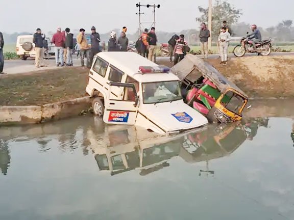 सुपौल मैट्रिक के परीक्षार्थियों की ऑटो को पुलिस गाड़ी ने मारी टक्कर, दोनों वाहन नहर में गिरे, छह घायल
