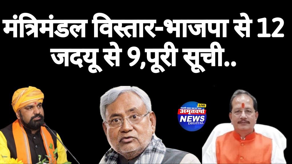 पटना। बिहार में एनडीए में सीट शेयरिंग का मामला सुलझने के बाद आज नीतीश कैबिनेट का विस्तार शाम 6:30 बजे होगा। भाजपा कोटे से प्रदेश के उपमुख्यमंत्री सम्राट चौधरी तथा मुख्यमंत्री नीतीश कुमार के बीच मुलाकात हो चुकी है।फाइनल लिस्ट भाजपा के द्वारा सीएम नीतीश कुमार को सौंप दी गई है। भाजपा के तरफ से 12 तथा जदयू की तरफ से 9 मंत्रियों के शपथ लेने की कंफर्म सूचना है भाजपा के तरफ से मंत्रिमंडल में शामिल होने वाले नाम मंगल पांडेय, रेनू देवी, नीरज कुमार बबलू ,नीतीश मिश्रा, नितिन नवीन ,जनक राम, केदार गुप्ता, दिलीप जायसवाल, हरी सहनी, कृष्णनंदन पासवान, सुरेंद्र मेहता और संतोष सिंह शामिल हैं। भाजपा के तरफ से पिछली बार मंत्रिमंडल में शामिल कई मंत्री दोबारा मंत्री नहीं बनाई जा रहे हैं।वहीं कुछ नए मंत्रियों के नाम सूची में शामिल है। वहीं दूसरी ओर वहीं जदयू कोटे से सुनील कुमार, शीला मंडल, अशोक चौधरी, महेश्वर हजारी, जयंत राज ,जमा खान, लेसी सिंह, रत्नेश सदा और मदन सहनी शामिल हैं। 2020 के बाद गठित मंत्रिमंडल में महेश्वर हजारी का नाम नहीं था।लेकिन इस बार उनके नाम को मंत्रियों की सूची में रखा गया है इसके पूर्व में विधान सभा में उप स्पीकर भी रह चुके हैं।