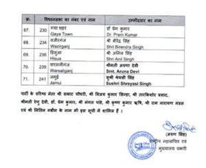 बिहार चुनाव के लिए बीजेपी की पहली लिस्ट जारी, सम्राट चौधरी समेत 71 को टिकट, पार्टी ने काटा विधानसभा अध्यक्ष का टिकट