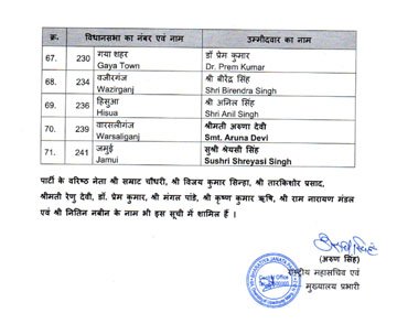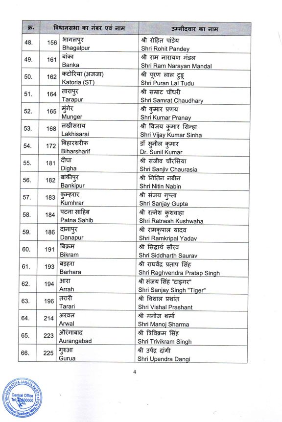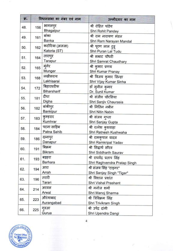 बिहार चुनाव के लिए बीजेपी की पहली लिस्ट जारी, सम्राट चौधरी समेत 71 को टिकट, पार्टी ने काटा विधानसभा अध्यक्ष का टिकट