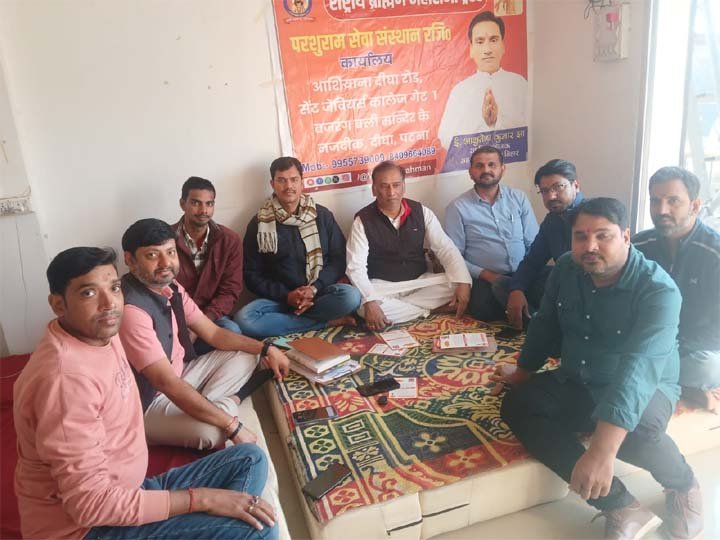 पटना। राष्ट्रीय ब्राह्मण महासभा ,परशुराम सेवा संस्थान के राष्ट्रीय संयोजक सह प्रदेश अध्यक्ष बिहार आशुतोष कुमार जी की अध्यक्षता में आज पटना कार्यलय में कोर कमेटी की बैठक हुई। बैठक में आगामी 15 दिसंबर को विद्यापति भवन में राष्ट्रीय ब्राह्मण महासभा, परशुराम सेवा संस्थान की पटना प्रमंडलीय ब्राह्मण कुंभ और सभी जिलो के संगठन प्रेमियों द्वारा बैठक बिहार के सभी 9 प्रमंडलों और 38 जिलों में ब्राह्मण समाज जी स्तिथी परिस्थिति पर विमर्श के साथ -साथ अखिल भारतीय संयुक्त ब्राह्मण संघर्ष समिति के राष्ट्रीय स्तर की बैठक आयोजित है। जिसमें देश भर के ब्राह्मण संगठनों के राष्ट्रीय अध्यक्ष पदाधिकारी एवं ब्राह्मण हितार्थ राष्ट्रहित में संघर्षशील सभी बंधु बांधवी ब्राह्मण समाज के दशा-दिशा पर निर्णय लेंगे और देश बजे यशस्वी प्रधानमंत्री और मुख्यमंत्री बिहार सरकार को ज्ञापन सौंपा जाएगा। वही कोर कमेटी की बैठक में सोना झा, रजनीश तिवारी, अभिनंदन पांडे, आलोक झा, उषा दूबे, डॉ निखिल चौधरी, ब्रजमोहन झा, आयुष तिवारी, प्रशांत मिश्रा, अश्विनी कुमार, गोविंद मिश्रा, प्रकाश रंजन झा, प्रियांशु ठाकुर, आदित्य दूबे आदि लोग मौजूद रहें।