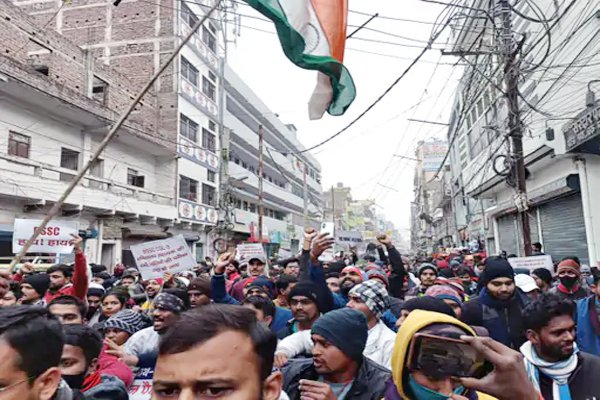 बीएसएससी की तीनों पालियों की परीक्षा रद्द करने की मांग को लेकर पटना में सड़कों पर उतरे अभ्यर्थी, कड़ाके की ठंड में कम नही हुआ उत्साह