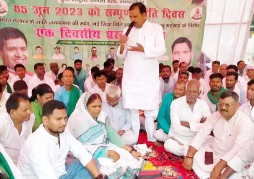 समस्तीपुर : जाति आधारित गणना, नई शिक्षा नीति को वापस लेने सहित अन्य मागों को लेकर युवा राजद का धरना