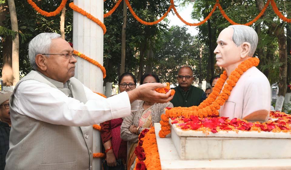 पटना। मुख्यमंत्री नीतीश कुमार ने शुक्रवार को अपने पूज्य पिता अमर स्वतंत्रता सेनानी स्व. कविराज रामलखन सिंह की पुण्य तिथि के अवसर पर अपने पैतृक गाँव कल्याण बिगहा जाकर ‘कविराज रामलखन सिंह स्मृति वाटिका में उनकी प्रतिमा पर माल्यार्पण कर अपनी भावभीनी श्रद्धांजलि दी और उन्हें नमन किया। मुख्यमंत्री ने अपनी माताश्री स्व. परमेश्वरी देवी एवं धर्मपत्नी स्व. मंजू सिन्हा की प्रतिमा पर भी माल्यार्पण कर उन्हें भावभीनी श्रद्धांजलि अर्पित की। इस अवसर पर मुख्यमंत्री के बड़े भाई सतीश कुमार सहित मुख्यमंत्री के परिवार के अन्य सदस्यों तथा निकट संबंधियों ने अमर स्वतंत्रता सेनानी स्व. कविराज रामलखन सिंह, स्व. परमेश्वरी देवी एवं स्व. मंजू सिन्हा की प्रतिमा पर माल्यार्पण कर उन्हें नमन किया एवं श्रद्धांजलि अर्पित की। इस अवसर पर अल्पसंख्यक कल्याण मंत्री मो जमा खान, बिहार राज्य आपदा प्रबंधन प्राधिकरण के उपाध्यक्ष उदयकांत, जदयू के राष्ट्रीय महासचिव मनीष कुमार वर्मा, पूर्व विधायक ई. सुनील कुमार सहित अनेक सामाजिक, राजनीतिक कार्यकर्ता एवं परिजनों ने अमर स्वतंत्रता सेनानी स्व. कविराज रामलखन सिंह की प्रतिमा पर पुष्पांजलि अर्पित कर श्रद्धांजलि दी। इस अवसर पर मुख्यमंत्री ने अपने पैतृक गाँव कल्याण बिगहा के भगवती मंदिर (देवी स्थान) में पूजा अर्चना की। कल्याणबिगहा एवं आसपास के लोग मुख्यमंत्री को अपने बीच पाकर अत्यधिक प्रफुल्लित थे। मुख्यमंत्री ने स्थानीय लोगों से मुलाकात कर उनका कुशलक्षेम जाना और उनका अभिवादन स्वीकार किया।