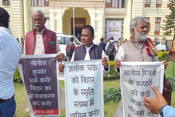 विधानसभा परिसर में स्वास्तिक चिन्ह स्थापित करने पर भाकपा माले का प्रदर्शन
