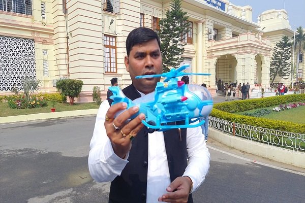 हेलीकॉप्टर का खिलौना के सदन पहुचे राजद विधायक, बोले- शराब ढूंढने के लिए लाये हैं, मुख्यमंत्री जी को देंगे