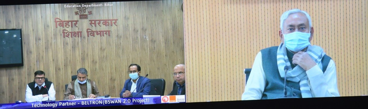 पटना। बिहार के मुख्यमंत्री नीतीश कुमार के समक्ष 1 अणे मार्ग स्थित संकल्प में वीडियो कॉन्फ्रेंसिंग के माध्यम से शिक्षा विभाग ने पंचायतों में उच्च माध्यमिक विद्यालय की स्थापना (आधारभूत संरचना सहित) एवं प्राथमिक तथा माध्यमिक शिक्षकों की नियुक्ति की अद्यतन स्थिति से संबंधित प्रस्तुतीकरण दिया।