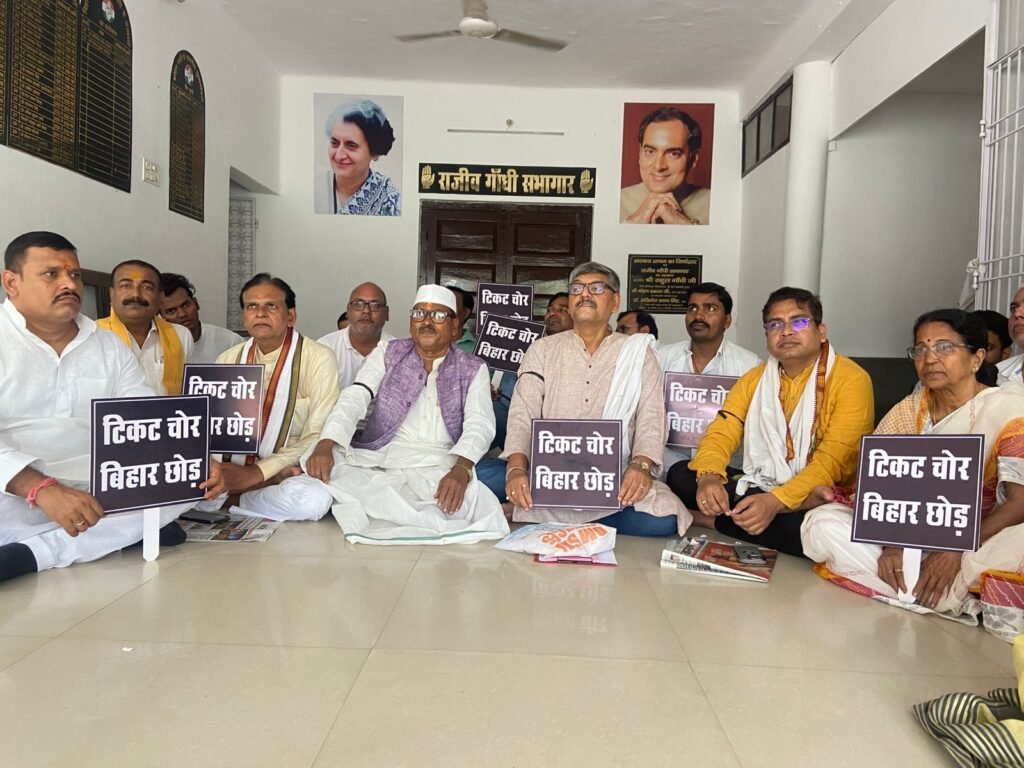 बिहार कांग्रेस के टिकट बिक्री और प्रभारी के खिलाफ कांग्रेसियों ने सदाकत आश्रम में दिया धरना, किया विरोध प्रदर्शन