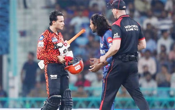 यह घटना सोमवार की रात हैदराबाद और लखनऊ के बीच खेले गए मैच के दौरान घटी, जब लखनऊ के स्पिनर दिग्वेश राठी और हैदराबाद के बल्लेबाज अभिषेक शर्मा के बीच कहासुनी हो गई। दोनों खिलाड़ियों के बीच मामला इतना बढ़ गया कि अंपायरों के साथ अन्य खिलाड़ियों को बीच-बचाव करना पड़ा। स्थिति की गंभीरता को देखते हुए बीसीसीआई उपाध्यक्ष राजीव शुक्ला को भी हस्तक्षेप करना पड़ा। इसके बाद यह मामला आईपीएल की अनुशासन समिति तक पहुंचा।