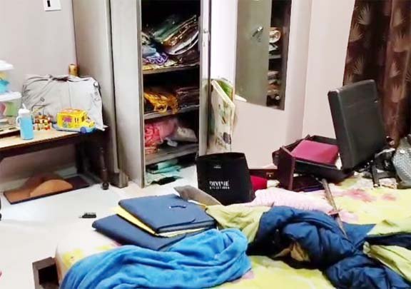 सीसीटीवी फुटेज में दिख रहा है कि एक चोर लोहे की खंटी से खिड़की को तोड़ता है और दरवाजे पर भी जोर आजमाइश करता है। अंदर घुसने के बाद उसने घर के हर कमरे को खंगाल डाला। गोडरेज आलमारी, बक्से, दीवान, बॉक्स और सूटकेस खोलकर सारे सामान को इधर-उधर फैला दिया। जरूरी और कीमती सामान को अलग करके चोर आराम से ले गए। इस दौरान उन्होंने चेहरे पर सफेद कपड़ा बांध रखा था, जिससे उनकी पहचान मुश्किल हो गई।