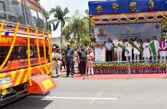 मुख्यमंत्री ने 34 अग्निशमन वाहनों को हरी झंडी दिखाकर किया रवाना, मंत्री समेत कई वरीय अधिकारी रहे मौजूद