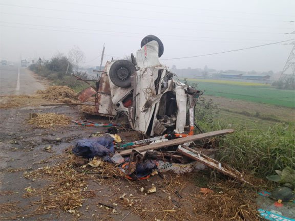 बिहटा–सरमेरा फोरलेन पर कोहरे में कहर: मवेशी लदी पिकअप पलटी, पिता-पुत्र की मौत, गाय-भैंस भी नहीं बचीं