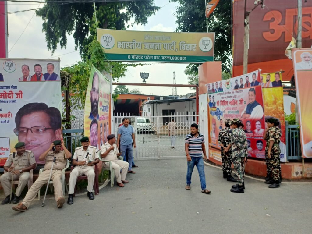 बीजेपी कार्यालय में हाई अलर्ट: वोट अधिकार यात्रा के दौरान सुरक्षा कड़ी, टकराव का डर
