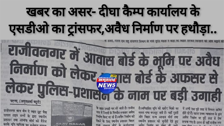 - अवैध निर्माण की खबरें जब हुई ‘अमृतवर्षा’ में प्रकाशित, तो मुख्यालय ने लिया निर्णय, किया एसडीओ का ट्रांसफर