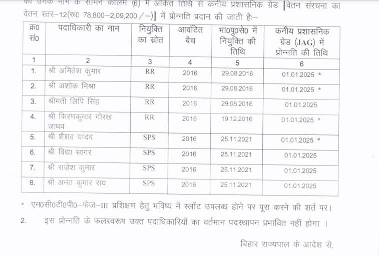 कौन-कौन अधिकारी हुए प्रोन्नत