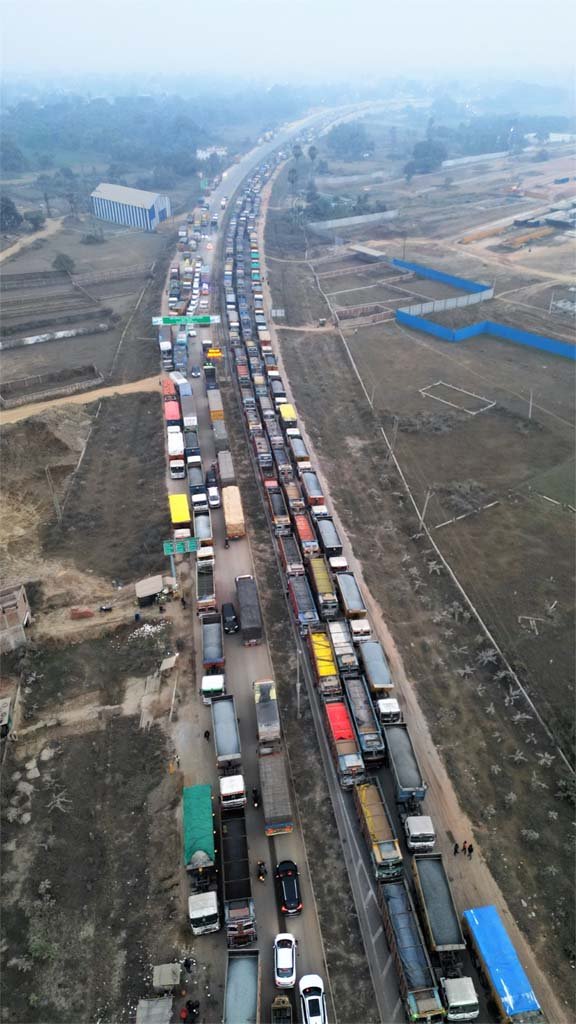 भोजपुर से लेकर पटना तक रहा जाम, 100 किलोमीटर तक ट्रकों की लगी लम्बी कतार