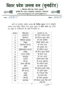 विधानसभा चुनाव में जदयू ने जारी की पहली सूची, 57 उम्मीदवारों को नीतीश ने दिया टिकट