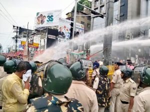 - पुलिस ने वाटर कैनन से पानी की बौछार की; आंसू गैस के गोले छोड़े, सम्राट चौधरी और पुलिस के बीच धक्कामुक्की हुई
