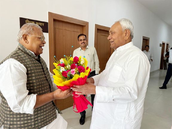 नीतीश से मुलाकात करने मुख्यमंत्री आवास पहुंचे जीतनराम मांझी, सीएम के स्वास्थ्य का लिया हाल-चाल
