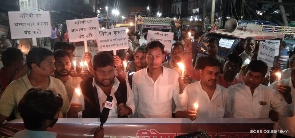 फतुहा। शुक्रवार की शाम फतुहा बाजार में जाप कार्यकर्ताओं के नेतृत्व में हिलसा के तेजाब हत्याकांड के विरुद्ध कैंडल मार्च निकाला गया तथा मृतक के परिजनों के प्रति संवेदना प्रकट की गई। मार्च के दौरान शामिल कार्यकर्ताओं व युवा वर्ग के लोगों ने आरोपियों को जल्द गिरफ्तार करने तथा आश्रितों को बीस लाख रुपए मुआवजा देने की मांग की। विदित हो कि कुछ दिन पहले हिलसा के नदहा गांव में विरेश कुमार नामक शख्स को आरोपियों ने तेजाब से नहलाकर उसकी हत्या कर दी थी। कैंडल मार्च रेलवे गुमटी से चौराहा होते हुए महारानी चौक तक गयी और एक शोक सभा में तब्दील हो गई। मौके पर जाप कार्यकर्ता व चन्द्रवंशी समाज के लोग मौजूद थे।