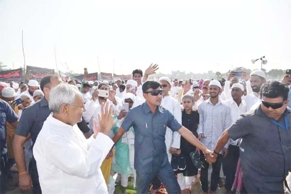 पटना। पटना के गांधी मैदान में ईद की नमाज अदा की गई। इस दौरान सीएम नीतीश ने बिहारवासियों को ईद की बधाई दी। उन्होंने कहा कि देश में अमन चैन बना रहे यही मेरी कामना है। हम सभी धर्मों का सम्मान करते हैं। देश में सामाजिक सौहार्द का माहौल है। सभी लोग बुलंद रहे। इस दौरान मुख्यमंत्री ने बताया कि वह हर वर्ष सेवइयां खाकर ही ईद मनाते हैं। शुक्रवार शाम चांद का दीदार होने के बाद फुलवारी शरीफ इमारत-ए-शरिया ने शनिवार को ईद मनाने का ऐलान किया गया था। इसी कड़ी में शनिवार सुबह पटना के गांधी मैदान में हजारों नमाजी भाइयों ने ईद की नमाज अदा की। इस दौरान सीएम नीतीश भी शामिल हुए। पटना जिले के 357 स्थानों पर 357 मजिस्ट्रेट और 500 पुलिस अधिकारियों के साथ 5000 पुलिस जवान तैनात रहे। इनमें सदर अनुमंडल में 60, पटना सिटी में 115, दानापुर में 56, बाढ़ में 57, मसौढ़ी में 39 और पालीगंज में 23 स्थान शामिल रहें। इसके अलावा सभी एसडीओ और एसडीपीओ को आवश्यकतानुसार अतिरिक्त प्रतिनियुक्ति करने का निर्देश दिया गया था। शुक्रवार को डीएम डॉ. चंद्रशेखर सिंह और एसएसपी राजीव मिश्रा ने प्रतिनियुक्त सभी मजिस्ट्रेट और पुलिस अधिकारियों को ड्यूटी स्थल पर उपस्थित होने और हर हाल में विधि व्यवस्था कायम रखने का निर्देश दिया। ईद को लेकर डीएम ने कहा कि सभी प्रशासनिक तैयारियां पूरी कर ली गई हैं। सार्वजनिक स्थानों पर भीड़-नियंत्रण और विधि-व्यवस्था कायम रखने के लिए मजिस्ट्रेट और पुलिस अधिकारियों की प्रतिनियुक्ति की गई है।