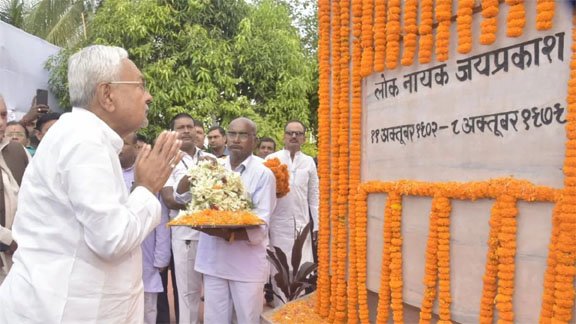 मुख्यमंत्री नीतीश कुमार ने अपने आधिकारिक सोशल मीडिया अकाउंट पर लिखा, “महान स्वतंत्रता सेनानी, प्रखर समाजवादी नेता, सम्पूर्ण क्रांति के प्रणेता एवं भारत रत्न लोकनायक जयप्रकाश नारायण जी की जयंती पर उन्हें शत-शत नमन।” उन्होंने कहा कि जेपी ने लोकतंत्र में अटूट विश्वास रखते हुए अन्याय के विरुद्ध समाज को एकजुट किया और उनके विचार आज भी एक समतामूलक और न्यायपूर्ण समाज के निर्माण की प्रेरणा देते हैं। नीतीश कुमार ने अपने संदेश में जेपी के उस ऐतिहासिक आंदोलन का भी जिक्र किया जिसने भारतीय राजनीति को एक नई दिशा दी। उन्होंने कहा कि लोकनायक जयप्रकाश नारायण न केवल स्वतंत्रता संग्राम के महान सेनानी थे, बल्कि आज़ादी के बाद देश में लोकतांत्रिक मूल्यों की पुनर्स्थापना में भी उनका योगदान अमूल्य रहा।
