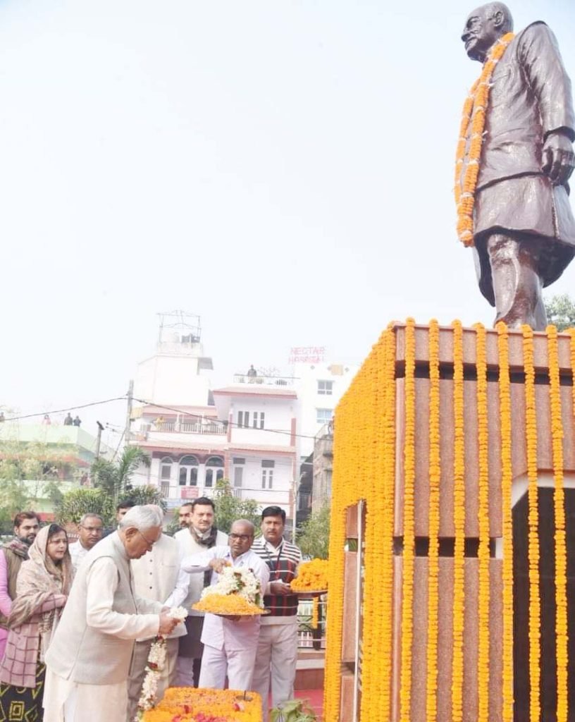 पटना। पूर्व केंद्रीय मंत्री स्व. अरुण जेटली जी के जन्मदिवस पर गुरुवार को पटना में राजकीय जयंती समारोह का आयोजन पीसी कॉलोनी, कंकड़बाग स्थित सेक्टर-ए, पार्क संख्या-31 में किया गया। राज्यपाल राजेन्द्र विश्वनाथ आर्लेकर एवं मुख्यमंत्री नीतीश कुमार ने स्व. अरुण जेटली जी की प्रतिमा पर माल्यार्पण कर उन्हें भावभीनी श्रद्धांजलि अर्पित की। इस अवसर पर उप मुख्यमंत्री तेजस्वी प्रसाद यादव, जल संसाधन सह सूचना एवं जन-सम्पर्क मंत्री संजय कुमार झा, परिवहन मंत्री शीला कुमारी, बिहार राज्य नागरिक परिषद् के पूर्व महासचिव अरविंद कुमार सिंह, बिहार बाल अधिकार संरक्षण आयोग के पूर्व सदस्य शिवशंकर निषाद सहित अनेक गणमान्य व्यक्तियों, सामाजिक एवं राजनीतिक कार्यकर्ताओं ने भी स्व. अरुण जेटली जी की प्रतिमा पर माल्यार्पण कर उन्हें श्रद्धांजलि अर्पित की। वहीं इस अवसर पर सूचना एवं जन-सम्पर्क विभाग के कलाकारों द्वारा आरती-पूजन, बिहार गीत एवं देश भक्ति गीतों का गायन भी किया गया। कार्यक्रम के पश्चात् पत्रकारों से बात करते हुए मुख्यमंत्री ने कहा कि जदयू की बैठक पहले से दिल्ली में तय है। यह सामान्य बैठक है। हर वर्ष हम लोग इस तरह की बैठक करते हैं।