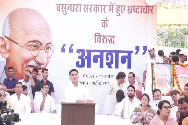 जयपुर में वसुंधरा राजे सरकार में हुए भ्रष्टाचार के खिलाफ अनशन पर बैठे सचिन पायलट, आलाकमान से मिली चेतावनी को भी किया नजरअंदाज