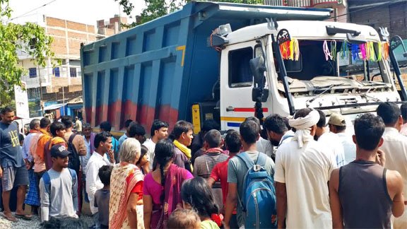 मसौढ़ी में बेलगाम बालू लदे हाइवा ने मचाया तांडव, चार लोग घायल, भीड़ ने चालक को पीटा, ट्रक क्षतिग्रस्त