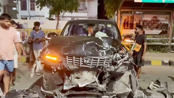 जिस स्कार्पियो से यह हादसा हुआ, उसके आगे बीजेपी का झंडा लगा हुआ था। टक्कर इतनी जबरदस्त थी कि स्कार्पियो का अगला हिस्सा पूरी तरह क्षतिग्रस्त हो गया। घटना के बाद गाड़ी में सवार दो लोगों को पुलिस ने हिरासत में ले लिया है, लेकिन गाड़ी का ड्राइवर मौके से फरार हो गया। पुलिस उसकी तलाश कर रही है।