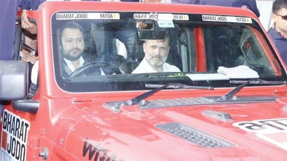 सासाराम की न्याय यात्रा में तेजस्वी ने चलाई राहुल की जीप, नीतीश को बताया थका हुआ सीएम