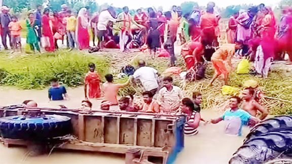 सीतामढ़ी में कांवड़ियों के ट्रैक्टर नहर में पलटी, महिला की मौत, कई घायल