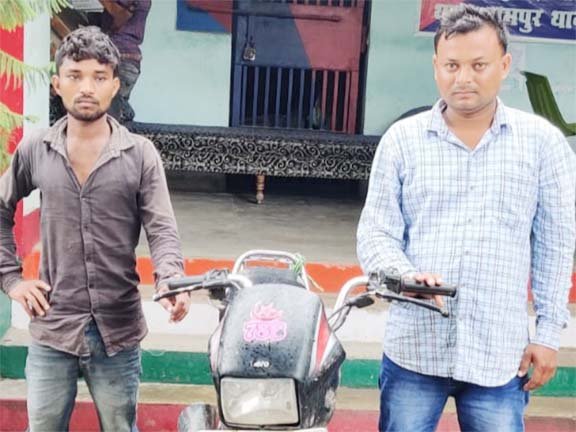 गया। बिहार के गया जिले के रामपुर थाना की पुलिस अपराध नियंत्रण पर लगाम लगाने को लेकर टीम चला रही थी। वाहन चेकिंग अभियान के दौरान चोरी की बाइक के साथ दो अपराधी पकड़े गए हैं। चोरी की बाइक के साथ पकड़े गए अपराधियों में शिवहर ज़िले के पिपराही थाना के मीनापुर निवासी रहमतुल्लाह ख़ान के बेटे सदाम ख़ान समेत औरंगाबाद जिले के गोह थाना क्षेत्र के गोड़िया स्थान गांव के रहने वाले उदय पासवान का पुत्र राहुल कुमार शामिल हैं। इस संबंध में प्रभारी एसएसपी हिमांशु ने बताया कि अपराध नियंत्रण एवं कानून व्यवस्था तथा विधि व्यवस्था बनाए रखने को लेकर रोको टोको अभियान रामपुर पुलिस द्वारा चलाया जा रहा था। इसी क्रम में गया कॉलेज मोड़ के समीप बिना नंबर प्लेट की बाइक से दो लड़के आ रहे थे। पुलिस टीम को देखकर बाइक वहीं छोड़कर भागने लगे, जिसे शस्त्र बालों के द्वारा दोनों को खदेड़ कर पकड़ लिया गया। पूछताछ में पकड़े गए दोनों लड़कों ने पुलिस को बताया कि उक्त बाइक की चोरी शहर के सिविल लाइंस थाना क्षेत्र से की थी। जिसका सत्यापन किया गया तो सिविल लाइंस पुलिस टीम ने बताया कि उक्त बाइक बीते वर्ष 2019 में चोरी गई थी। इस संबंध में 21/19 कांड दर्ज है। फिलहाल दोनों से पूछताछ के बाद शनिवार को जेल भेजा जा रहा है।