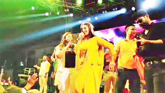 गीत संगीत के इस कार्यक्रम में सबसे पहले गोलू राजा, माही मनीषा ने लोगों को झुमाया। इसके बाद कॉमेडी किंग आनंद मोहन स्टेज पर उतरे। उन्होंने अपने चिर परिचित अंदाज में लोगों को हंसाया। विधायक और गायक विनय बिहारी ने श्रोताओं को अपने गानों से मंत्रमुग्ध कर दिया। इसके बाद देर रात्रि अक्षरा सिंह आईं। चंद मिनटों का गाना गाते ही इन्हें नजदीक से देखने के लिए भीड़ बेकाबू हो गयी। अंत में अनुपमा यादव ने माइक संभाला तब जाकर दर्शक शांत हुए।